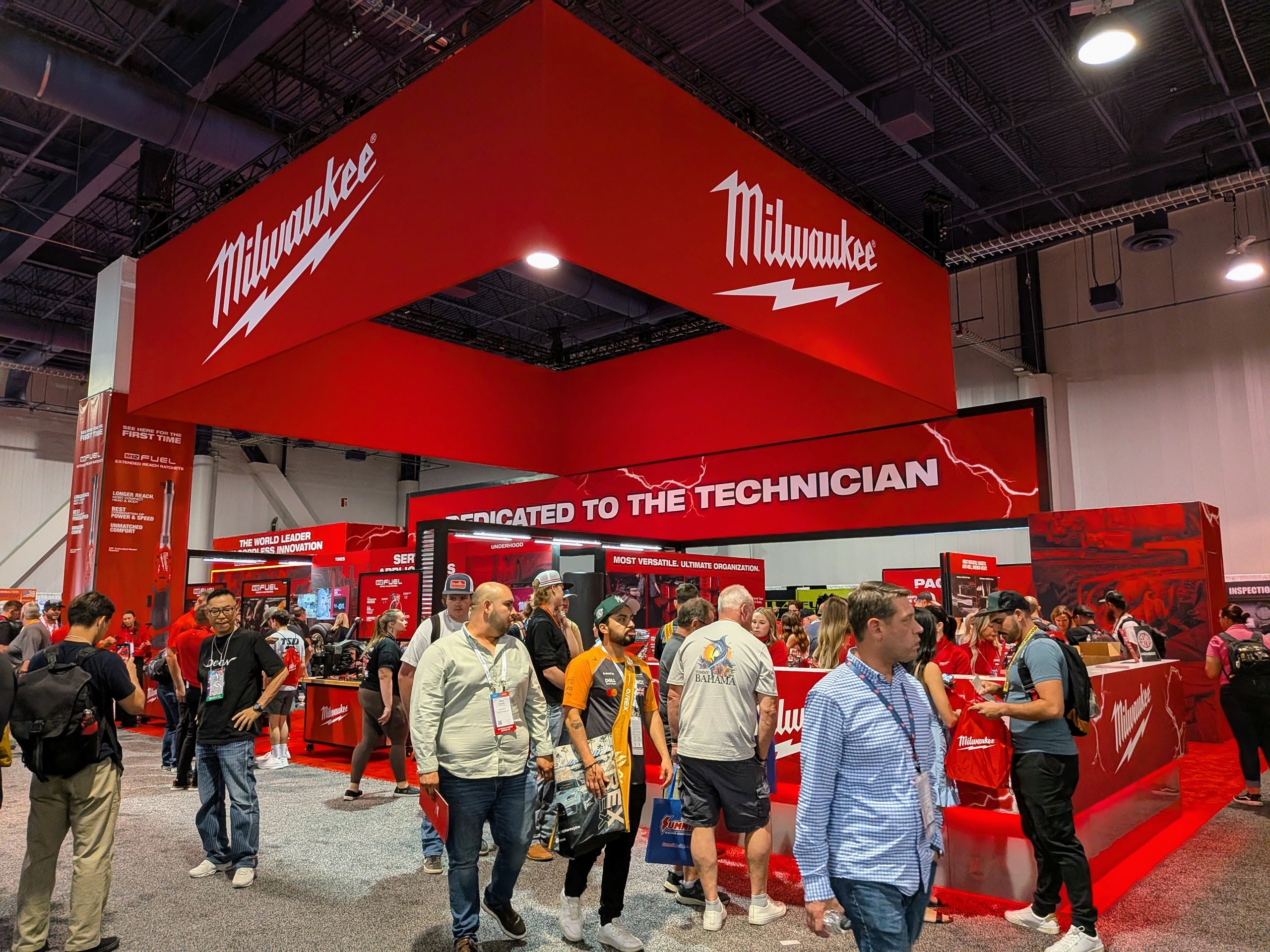 Milwaukee Tool had a commanding presence with a signature red exhibit, featuring several demo stations and a very popular wall with the newest tool lineup.