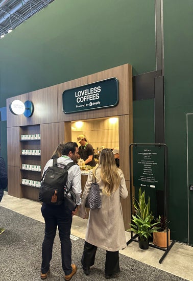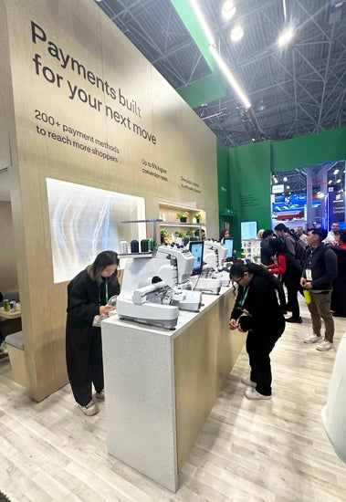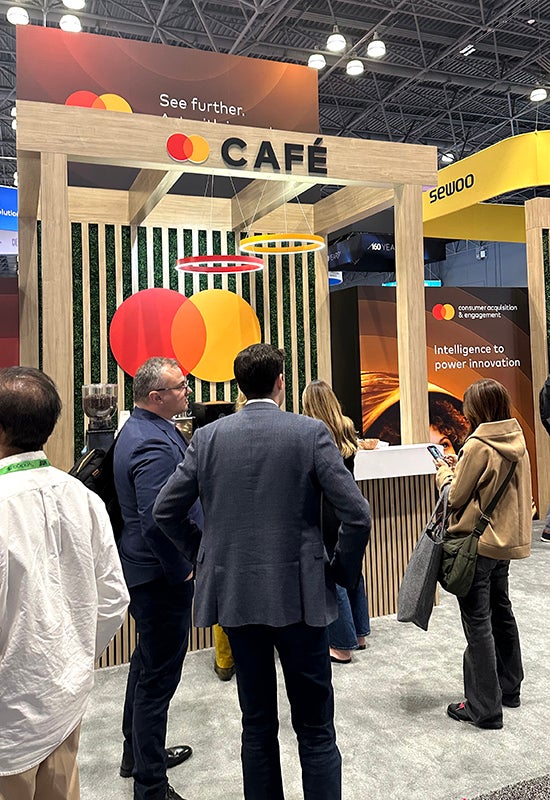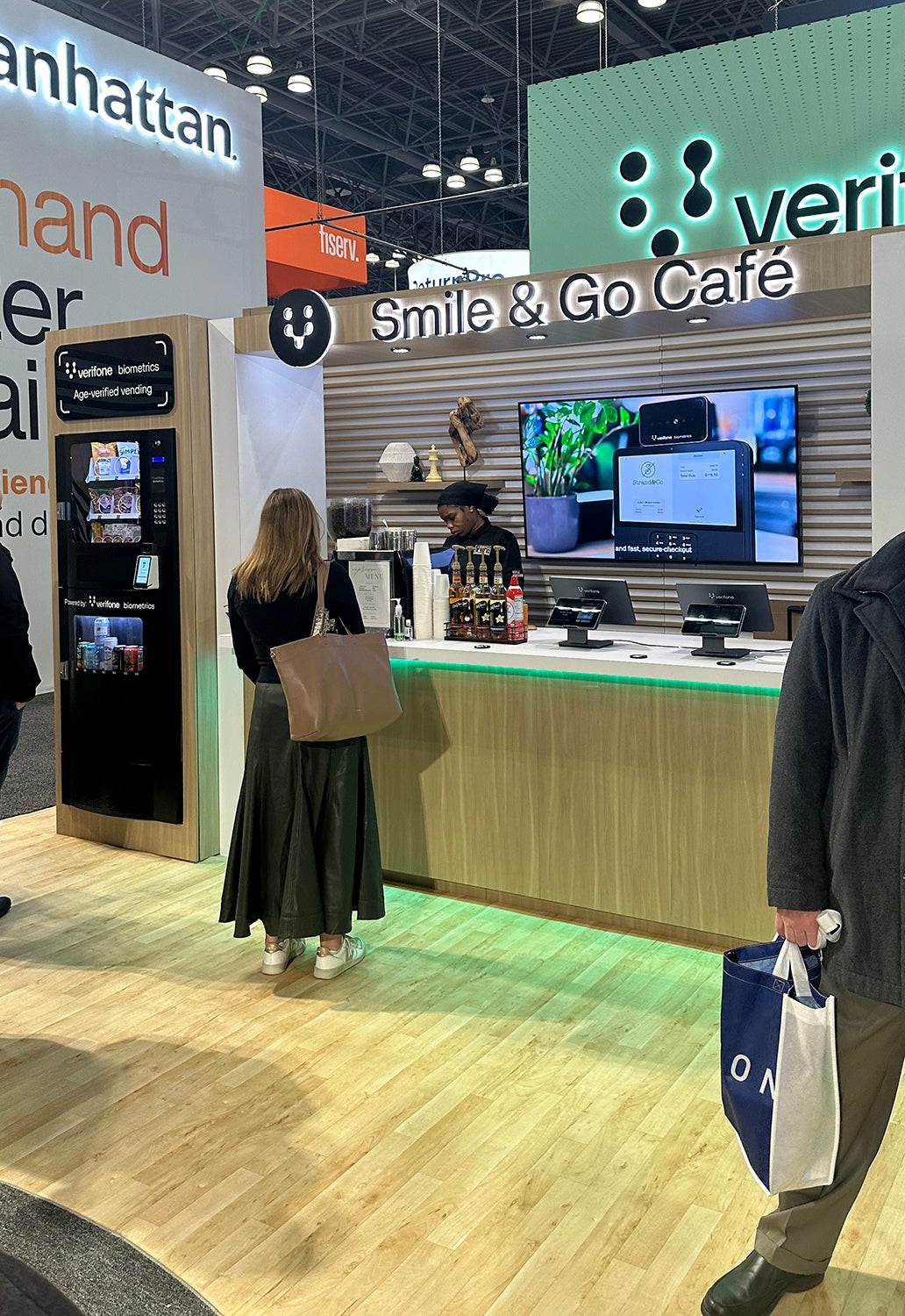 In-booth coffee and juice bars have been a staple of NRF over the last few years, but in 2026, offering refreshments, whether complimentary or for purchase, felt like table stakes among the bigger players. In several booths, exhibitors showcased their retail solutions by requiring attendees to order their drinks using the brand’s technology. And nearly every beverage bar we encountered had a line of thirsty, or caffeine-deprived, visitors. Among brands offering beverages were JP Morgan, T-Mobile, Mastercard, Shopify, Verifone, WorkJam, Adyen, Twilio, Vusion, Nedap and Diebold Nixdorf.