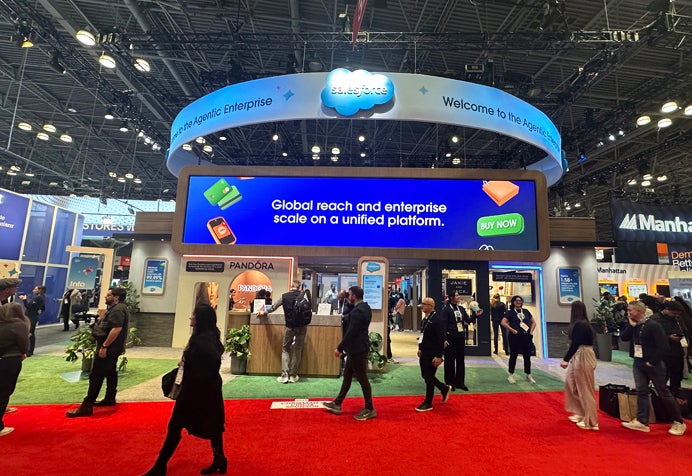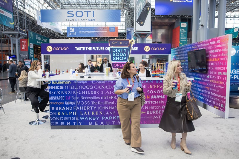 Salesforce, in particular, made a point of showcasing how its technology is leveraged by leading retailers, using a sizeable portion of its footprint to create a mini shopping mall of sorts that featured curated vignettes from Pandora, Janie and Jack, Shark/Ninja and PepsiCo. Meanwhile, Adobe dedicated a decent portion of its footprint to its Coca-Cola partnership.