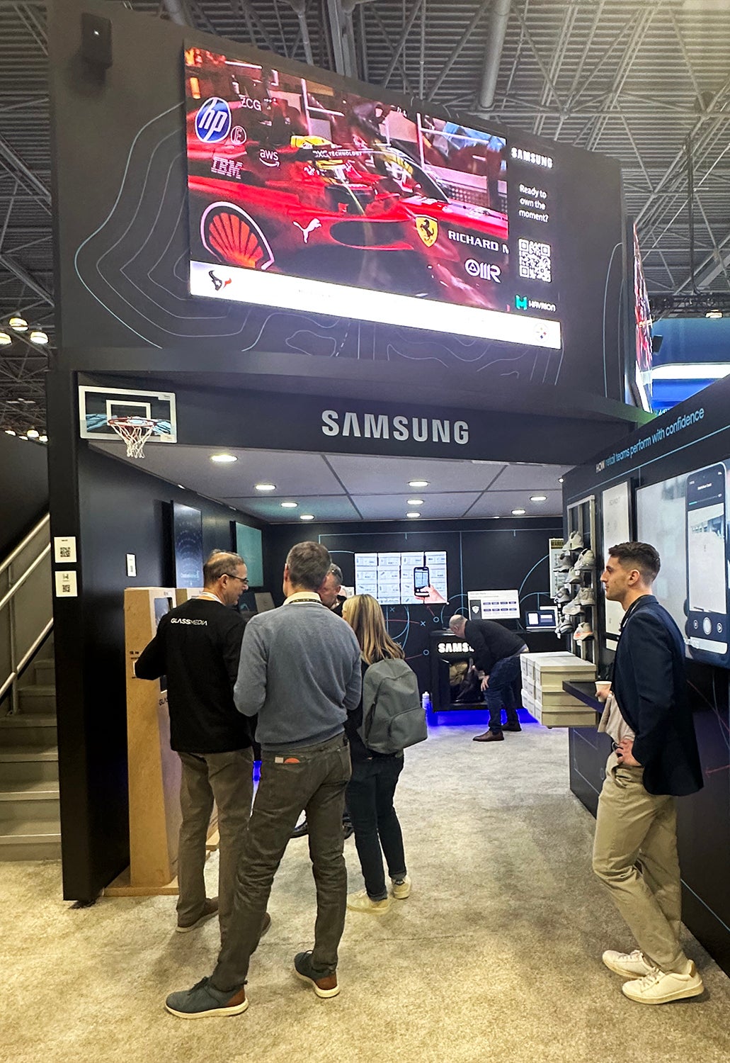 World Cup sponsor Lenovo’s booth featured a fan zone and several other World Cup-related vignettes; T-Mobile shined a spotlight on its F1 partnership via checkered flags and flooring; SAP dedicated a chunk of its extensive booth to tennis and its partnership with Wilson with themed vignettes and a pickleball challenge; Samsung went all in on sports from football to F1 to basketball with the help of a mosaic of screens; and the exterior of HP and Intel’s exhibit featured a display of soccer jerseys and cleats.