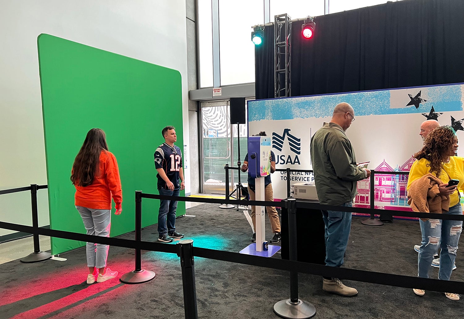 New for this year, an AI photo op was built into the queue space to engage fans as they waited for the lounge to open. In collaboration with EA Sports’ Madden NFL, of which USAA is the Official Salute to Service Partner, the photo booth ran an AI body scan of each participant, and they could then choose a Madden-inspired pose for the image that was available as a printout and downloadable file to share on social media.