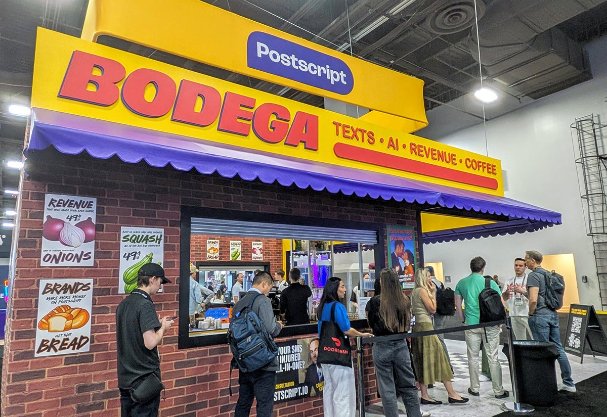 Postscript built a bodega complete with deli cases and fake security cameras, and even a bodega cat. But in the heart of the activation were the brands that use Postscript for SMS programs. “We’re a tech company, but we’re brand first,” says Angel Kinard, director of events partner marketing at Postscript.