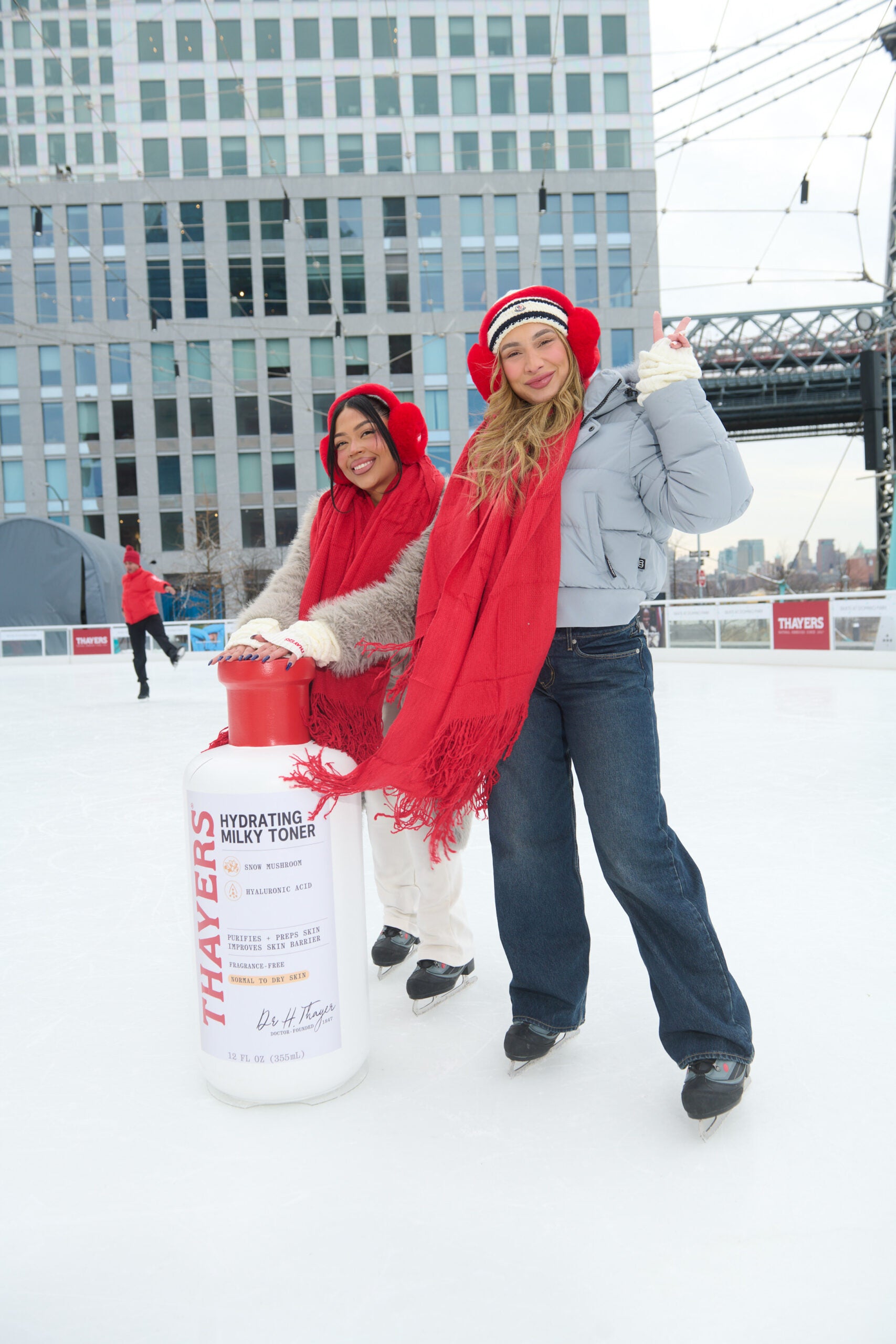 On a larger scale, Thayers popped up at Domino Park in New York City to celebrate its Milky collection and the debut of the 80 Hour Milky Moisturizer. After makeup influencer and brand partner Shelby Ann Bell described the moisturizer’s results as “skin so glassy you could skate on it,” the team moved to activate at an ice skating rink, a venue that also aligned with the hype around the 2026 Winter Olympics in Italy.