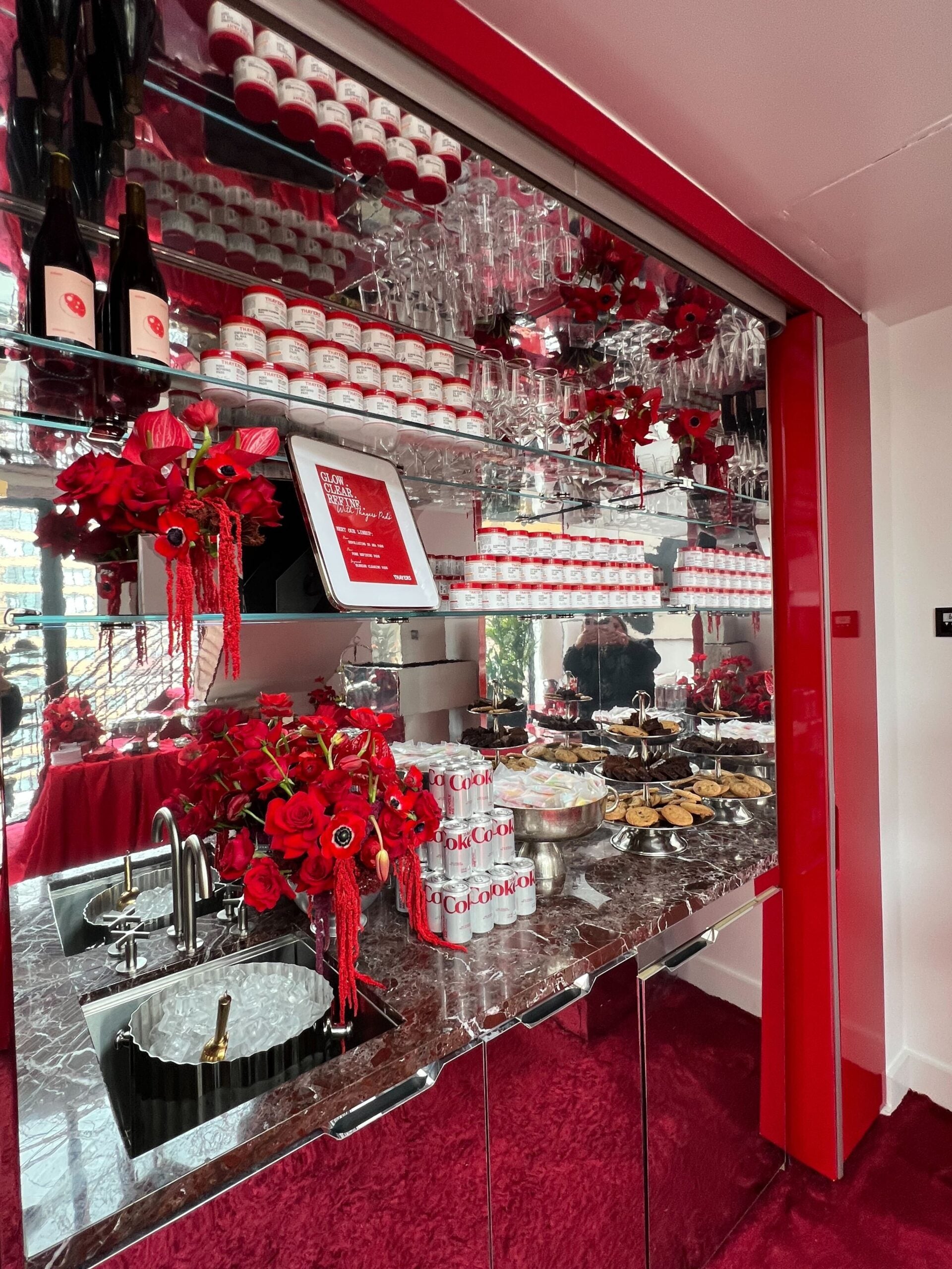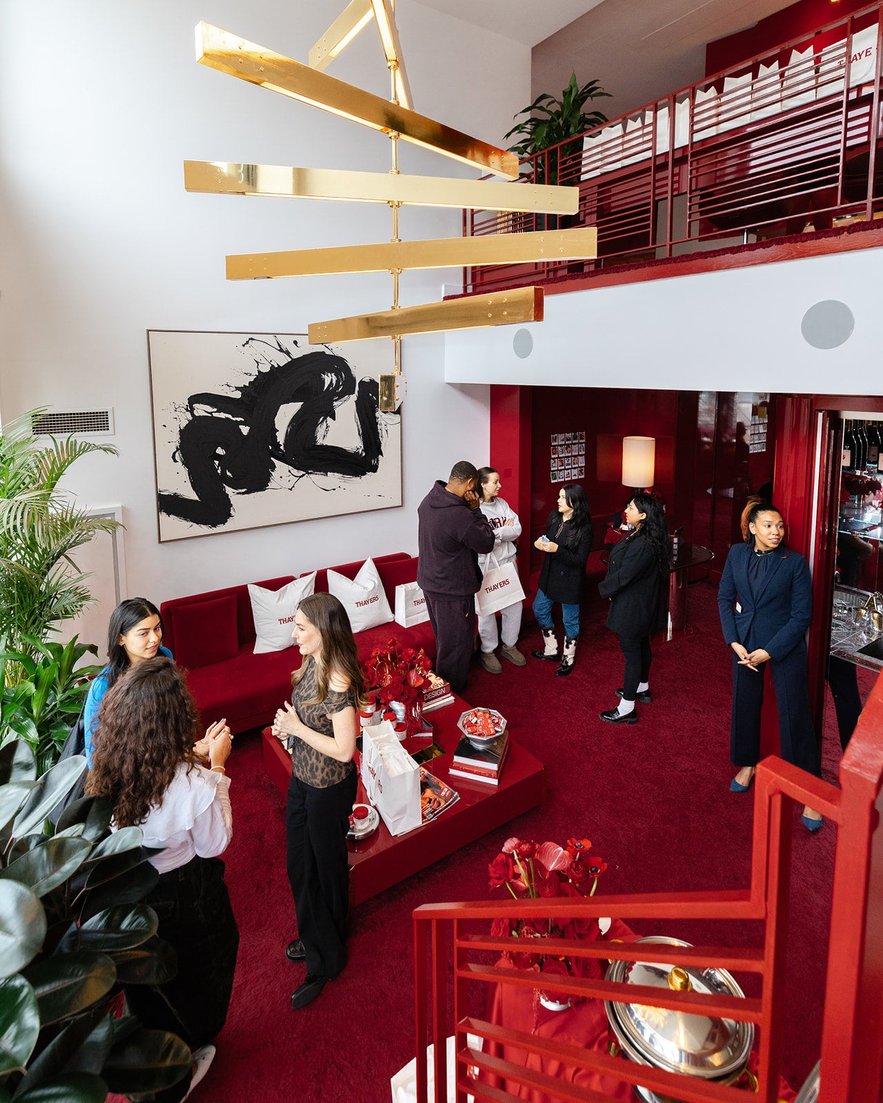 Upon arrival, attendees received a branded keycard in the lobby and boarded an elevator to the penthouse floor, where they were greeted by the Thayers team. Branded lounge areas featured cozy seating, custom magazines, props for photo moments and a menu of chicken tenders, fries and beverages, were all in the mix.
